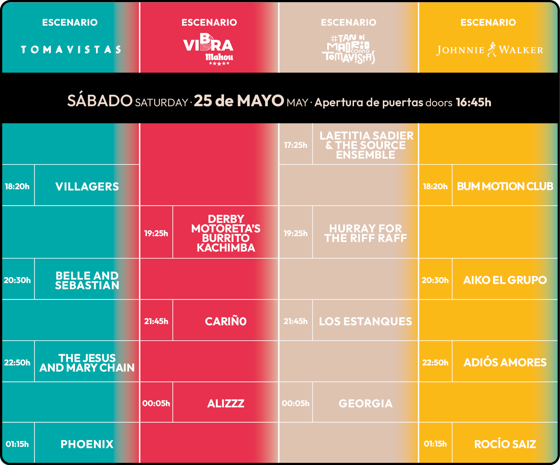 Horario Sábado 25 de Mayo Tomavistas 2024