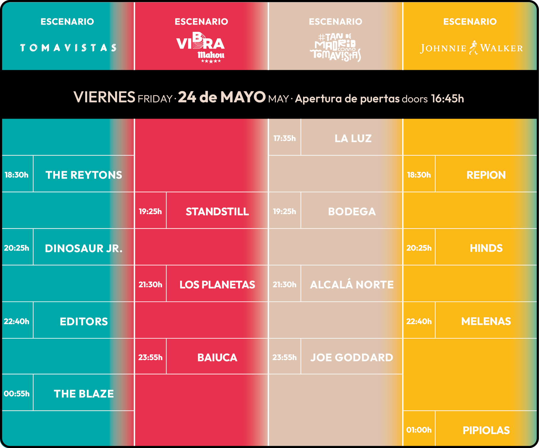 Horario  Viernes 24 de Mayo Tomavistas 2024
